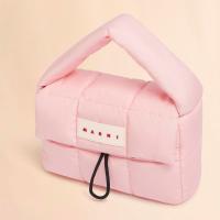 軽やかなキルティング素材の「PUFF」ショルダーバッグ。幅広のショルダーストラップは肩にやさしくフィットし、デイリーユースに最適。フラップ部分にセーフティーマグネットが付属、内側はドローストリング仕様。フロントのラバーロゴパッチがアクセントに。