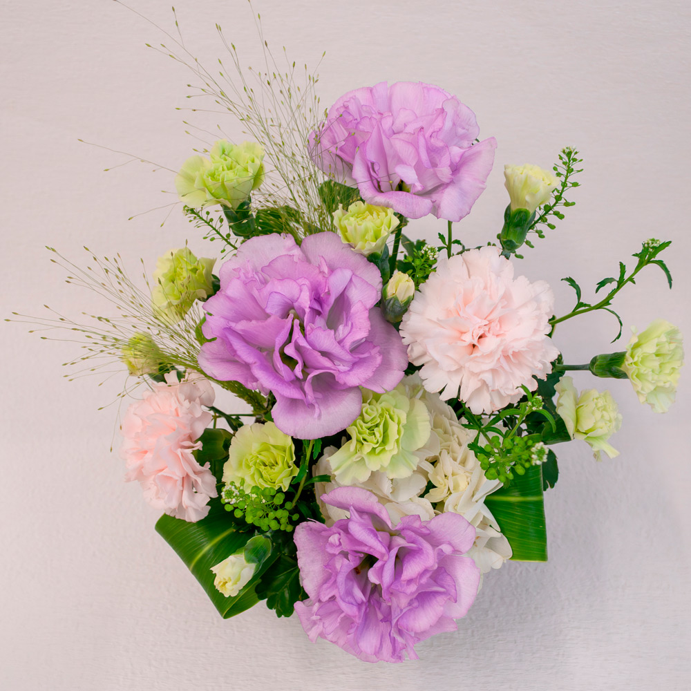 生花アレンジは、故人を偲ぶお気持ちに和らぎを与えます。