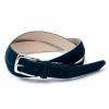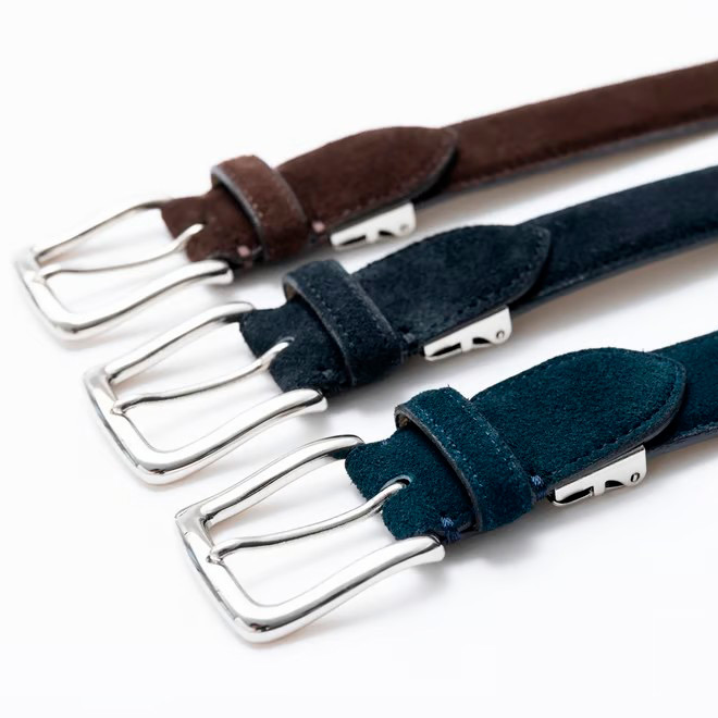 本革ベルトなのに伸び縮みする<くつろぎリラックスレザーシリーズ>。人気の高いバックスキン(スエード)シリーズ。靴合わせでは定番のバックスキン(スエードレザー)に伸縮機能を採用し付け心地を追求しました。付け心地の良さはもちろん、伸縮することでピン穴にも負担がかからず驚くほどの高寿命を実現しています。裏革はヨーロッパの有名ブランドで数多く採用されているイタリア産を使用しています。バックルカラーは、艶ニッケルを採用。サイズを簡単に調整できるフリー仕様です。
