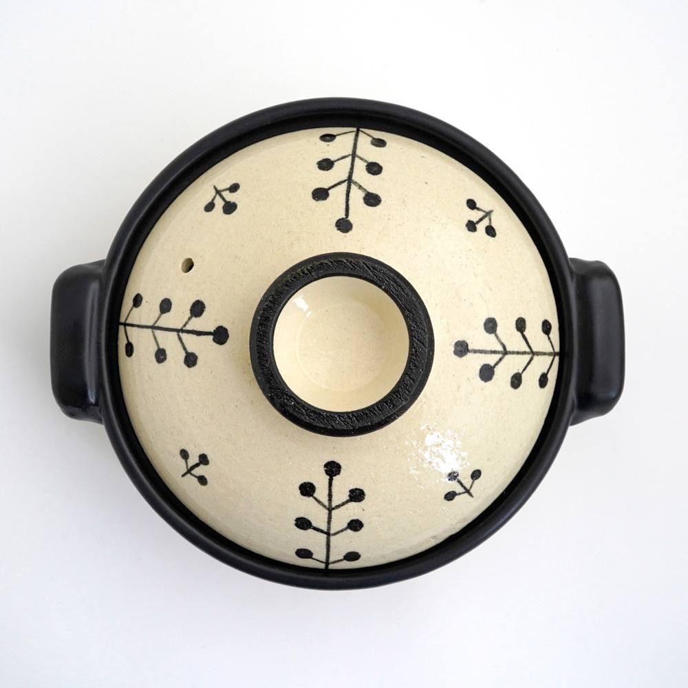 厚みのある造りが高い保温性を実現し、料理の美味しさをしっかりと閉じ込めます。耐熱性に優れたペタライトを使用しており、安心の耐久性を備えています。木の実をモチーフにした文様は、土鍋職人が一つひとつ丁寧に手描きで仕上げたもの。温もりのある手仕事の風合いが、食卓にやさしい彩りを添えます。北欧風のデザインは、現代の暮らしに自然に馴染みます。