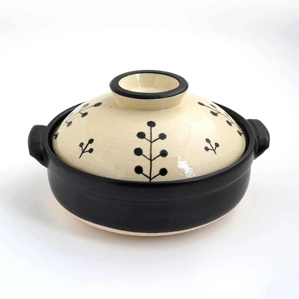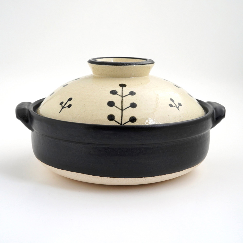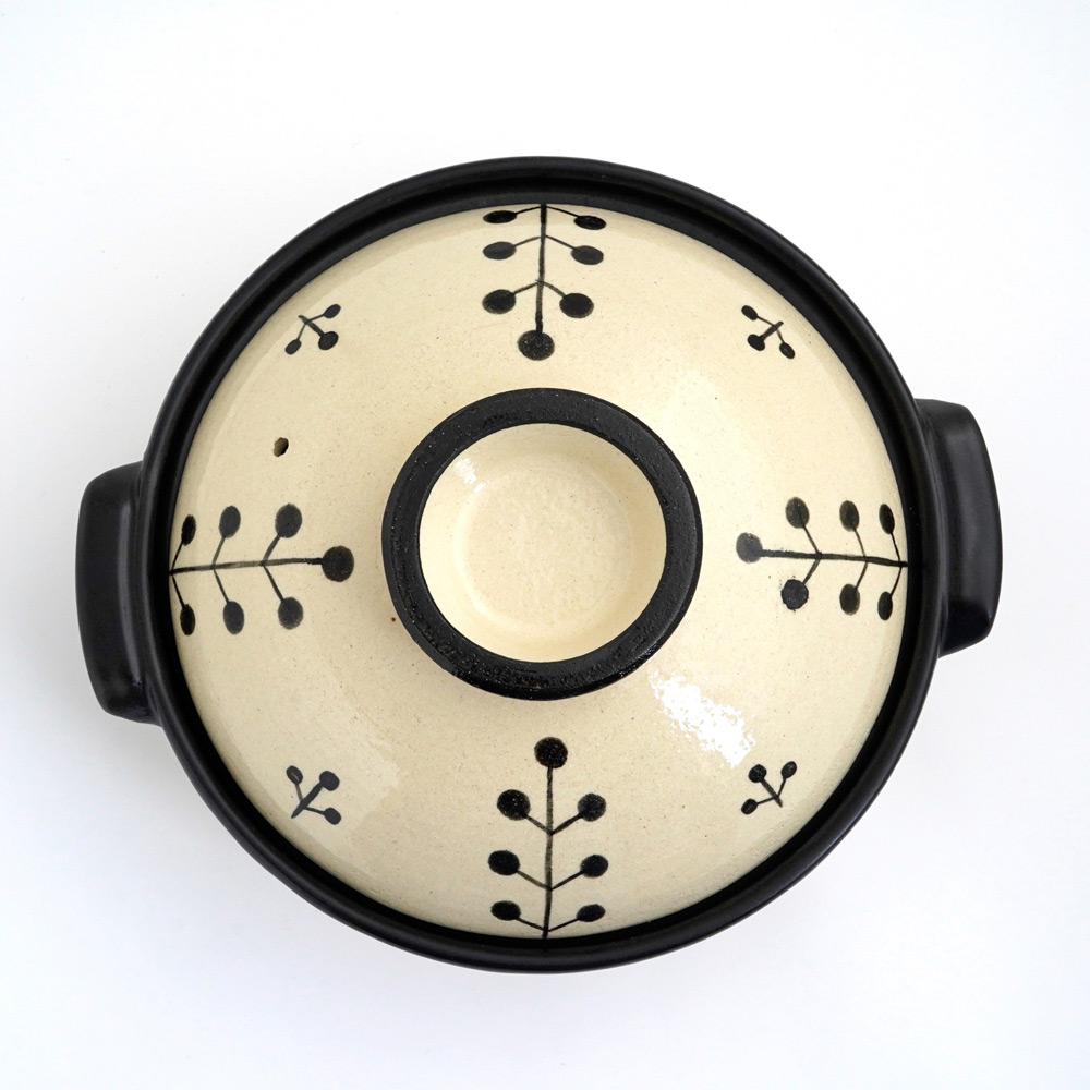 厚みのある造りが高い保温性を実現し、料理の美味しさをしっかりと閉じ込めます。耐熱性に優れたペタライトを使用しており、安心の耐久性を備えています。木の実をモチーフにした文様は、土鍋職人が一つひとつ丁寧に手描きで仕上げたもの。温もりのある手仕事の風合いが、食卓にやさしい彩りを添えます。北欧風のデザインは、現代の暮らしに自然に馴染みます。