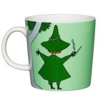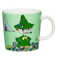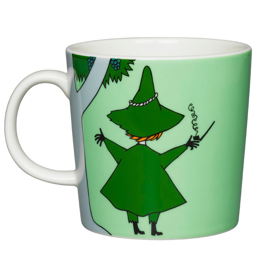 この「スナフキン」は2015年にリニューアルされたデザイン。「ひとりぼっちのムーミン」から、スナフキンがムーミンと初めて出会った場面が描かれています。スナフキンはムーミンの親友で、リトルミイの異父弟。緑の帽子がトレードマークで、心が温かく、思索を好む放浪者で世界中を旅しています。また、ハーモニカを吹き、釣りを愛しています。