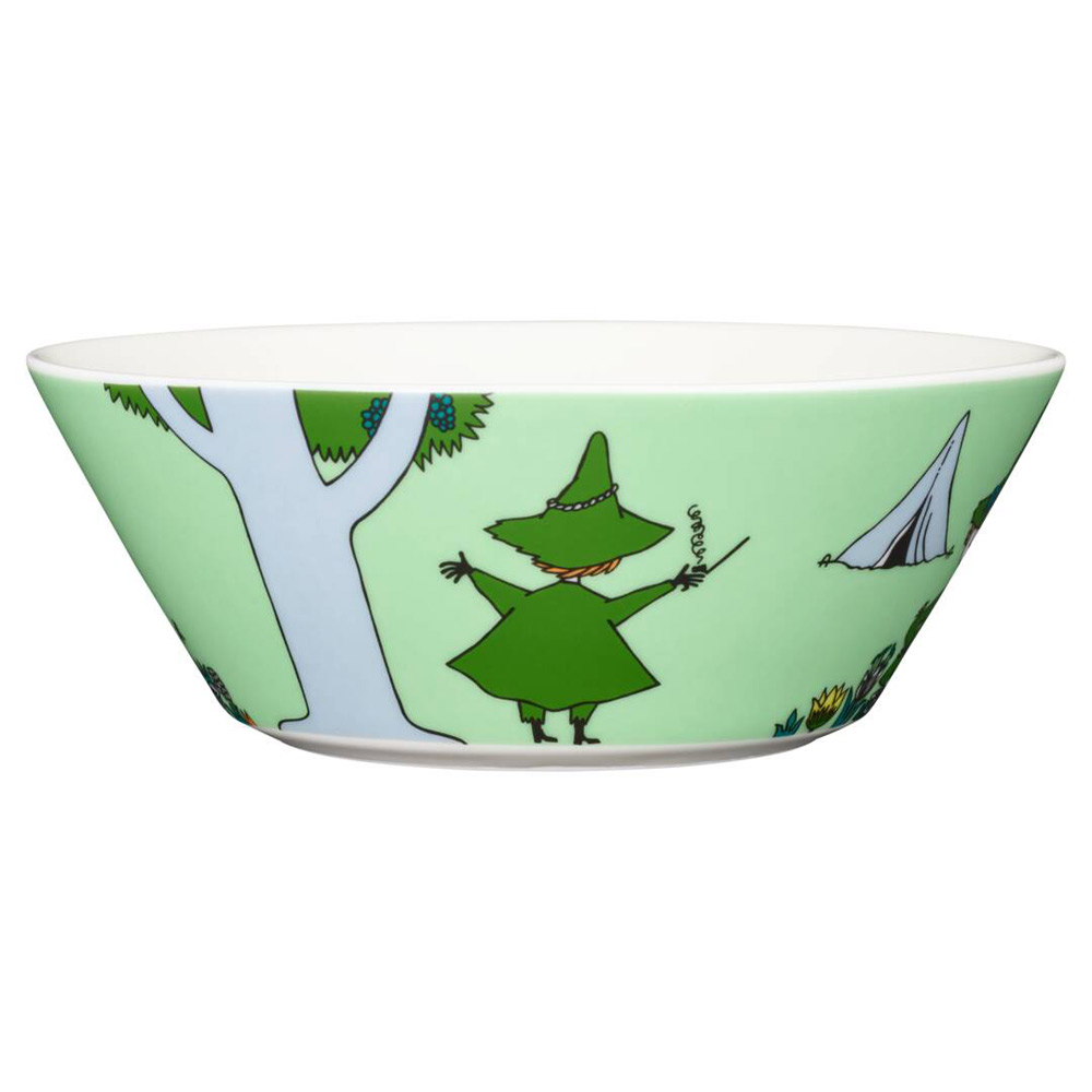 この「スナフキン」は2015年にリニューアルされたデザイン。「ひとりぼっちのムーミン」から、スナフキンがムーミンと初めて出会った場面が描かれています。スナフキンはムーミンの親友で、リトルミイの異父弟。緑の帽子がトレードマークで、心が温かく、思索を好む放浪者で世界中を旅しています。また、ハーモニカを吹き、釣りを愛しています。