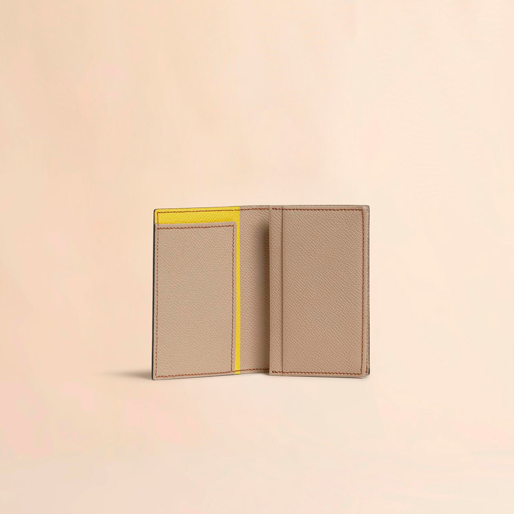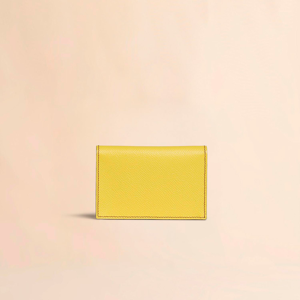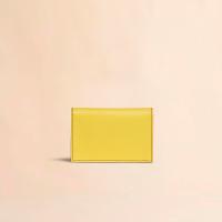 カーフレザー製のカードケース。ビジネスカードを40枚程度収納可能なメインコンパートメント1つ、カードポケット2つ。フラップ裏にスリップポケット1つ。フロントにロゴ入り。