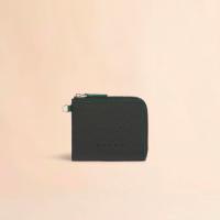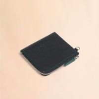 カーフレザー製の“FILO”ラウンドジップコインケース。コントラストカラーのステッチがポイント。フロントにエンボスロゴ入り。