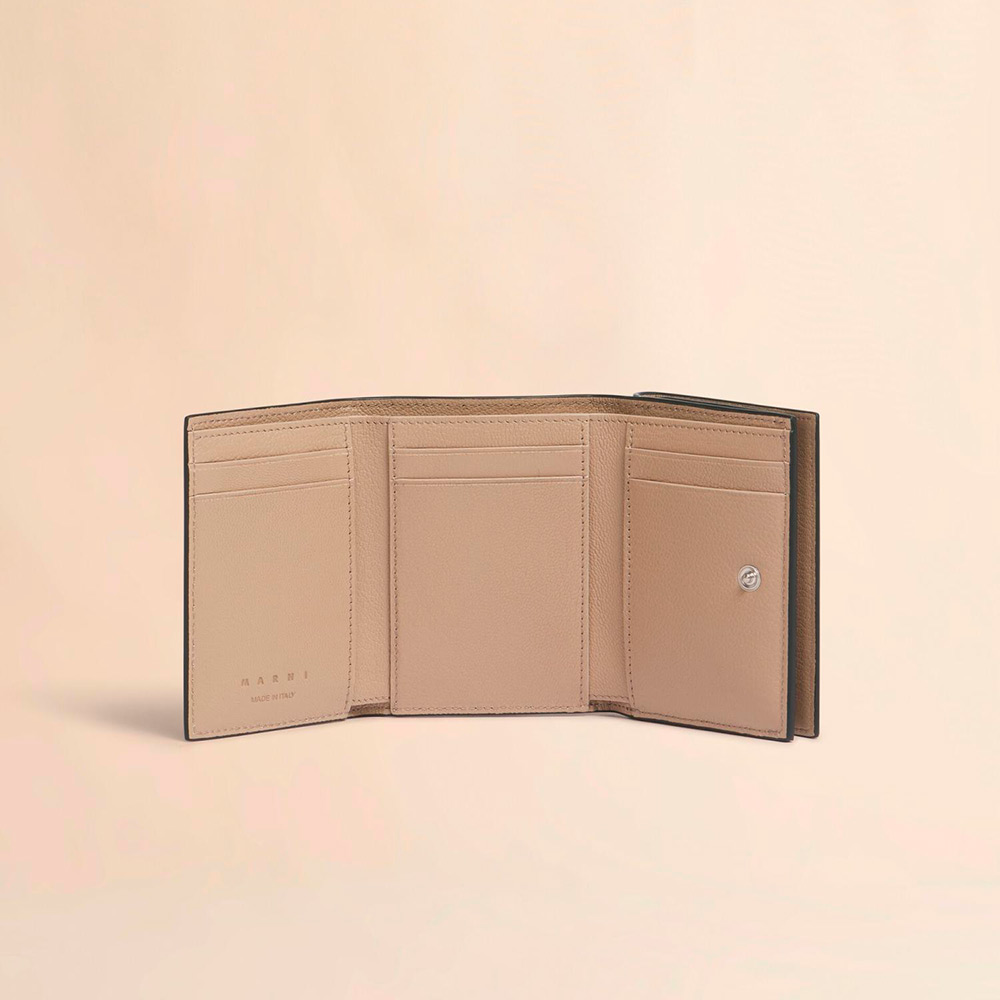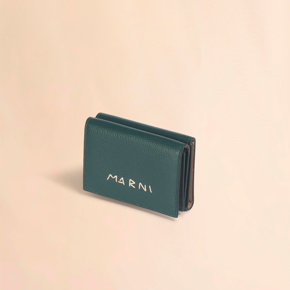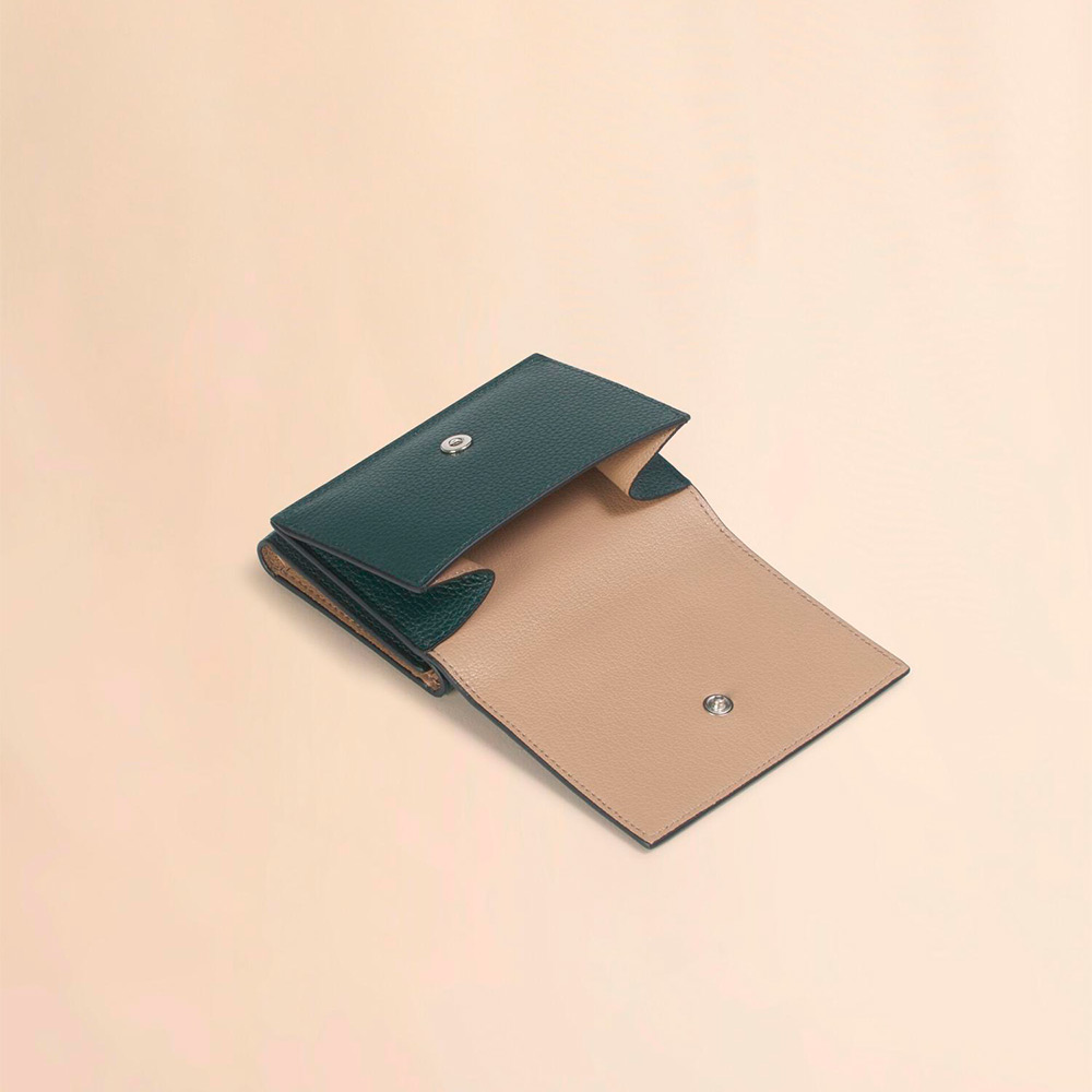 グレインレザー製の”MENDING”3つ折りウォレット。紙幣入れ1つ、カードスロット6つ、コインポケット1つ。フロントにハンドステッチで施されたメンディングロゴがアクセントに。