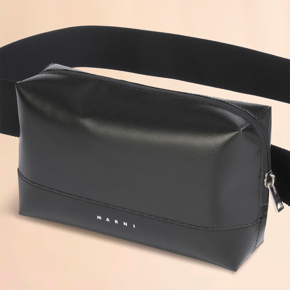 ポリエステル素材のスクエアフォルムが特徴的な“TRIBECA”バムバッグ。ベルト部分の長さ調節により、ウエストポーチやクロスボディとして使える2WAY仕様。ジップ開閉式のメインコンパートメントは使いやすく、コンパクトながら必要なアイテムをスマートに収納可能。フロントにロゴ入り。