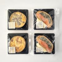 サーモンのパイ包み焼き×2個、ハムとベーコンのキッシュ×1個、きのこのキッシュ×1個