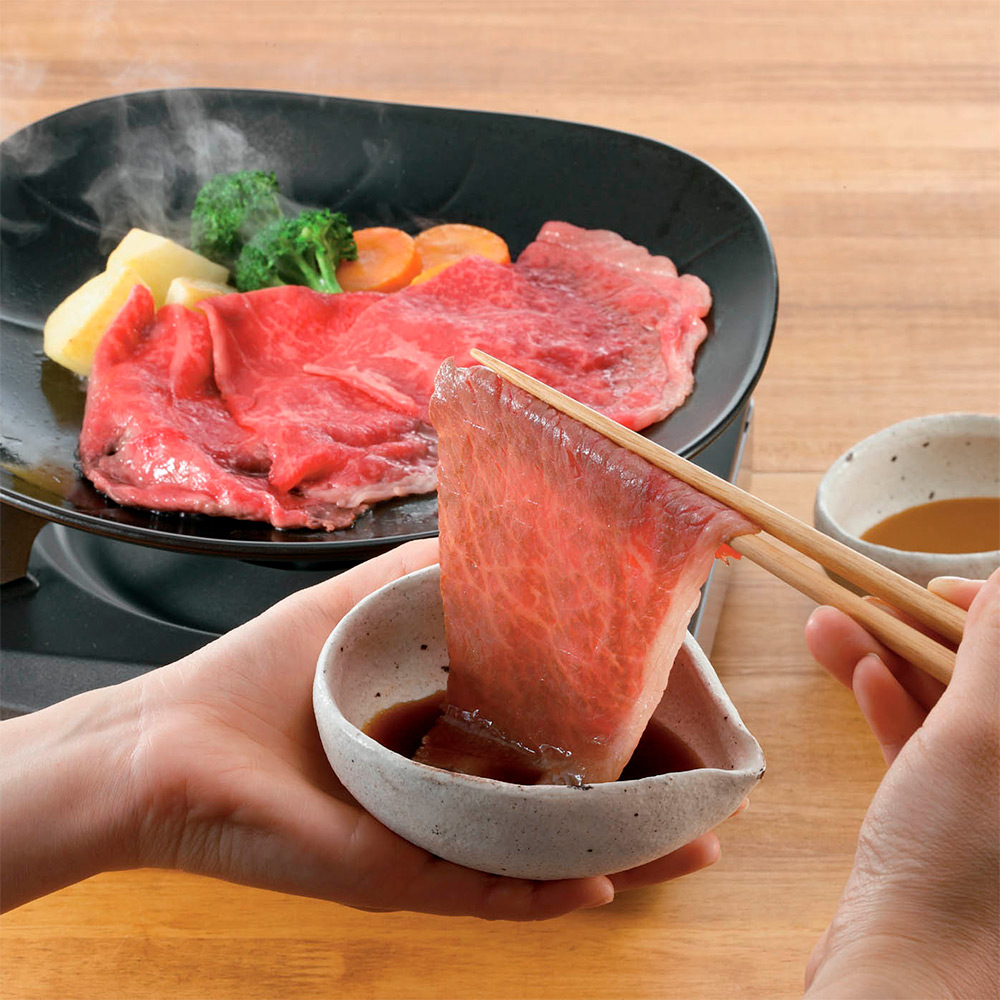 大和榛原牛すき焼きもも肉(シート巻仕上)500g、肉料理うし源割下220ml