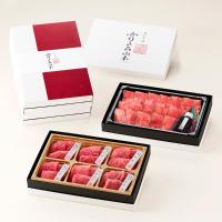 贈りものにぴったりの近江牛赤身づくしの2段重をご用意。1段は近江牛の赤身焼肉用をご用意。ランプ、カメノコ、マルシン、モモ、ウチヒラ、イチボなど、近江肉師がその日のおススメで選んだ6品をお詰めいたします。近江牛に合わせた手づくりの焼肉のたれでご賞味ください。また、2段目は店内直火で焼き上げ、外はほのかに香ばしく、中はしっとりの味わいで当店人気NO.1のローストビーフをスライスでご用意。淡白な赤身肉の旨味を引き出す、そのために必要な味付けは塩のみ。シンプルだからこそ嘘がない、素材本来の味をお楽しみください。解凍後すぐに食べられるから手間いらずで贈りものギフトに最適です。手づくりローストビーフソースをつけてお召し上がりください。母の日カードをお付けしてお届けいたします。