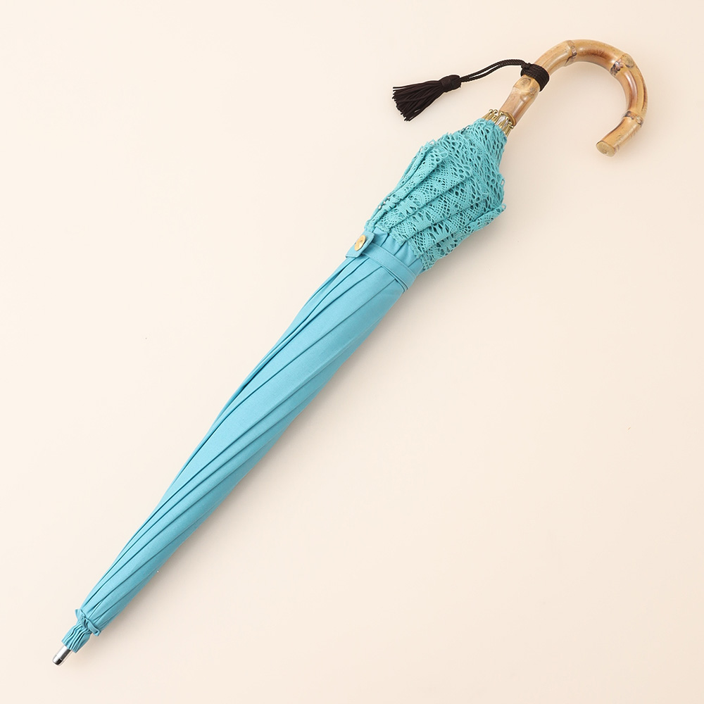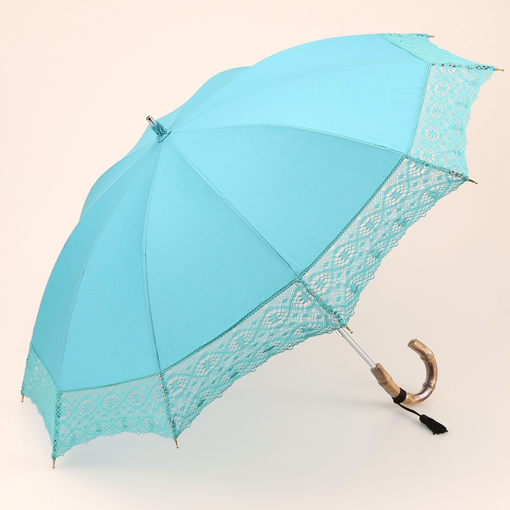 前原光榮商店の定番である、昔ながらのトーションレース※のパラソルが今年も登場。繊細なトーションレースは貴重な国産。国内のレースにて丁寧に織られています。前原光榮商店では、少なくとも30年以上前よりこの国産トーションレースのパラソルを作り続けています。ナチュラルでシンプルな綿素材の生地と清楚で品のあるレースパラソルは毎年人気を博します。夏らしい涼しげなカラーは、ギフトにも人気のシリーズです。