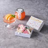 プリザーブドフラワー(バラ×2・カーネーション・アジサイ・カスミソウ)、造花、紙製花器、お手入れのしおり、山形県産の白桃ゼリー146g×2