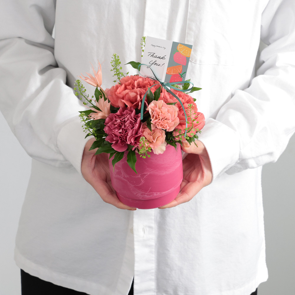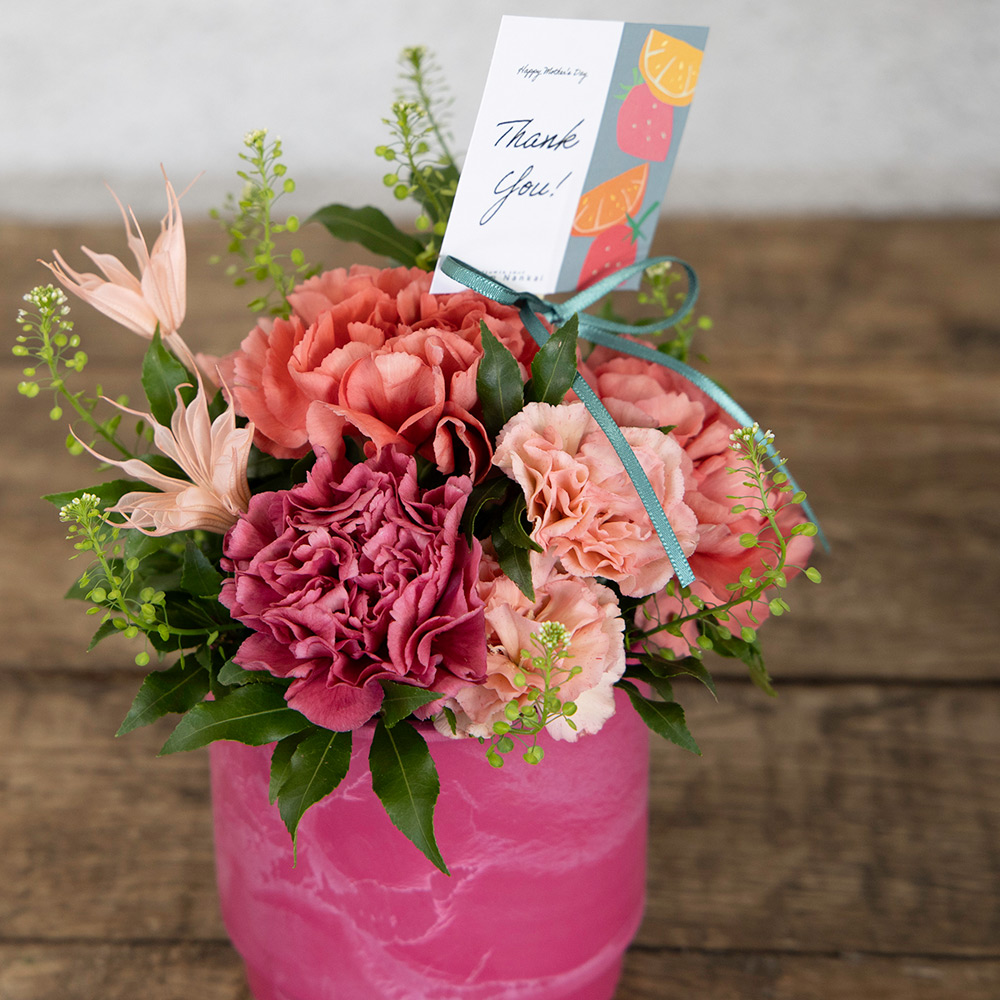 甘いお菓子と共にお茶やコーヒーを飲み、会話を楽しみ仲を深めるスウェーデンの風習「FIKA(フィーカ)」をテーマにした母の日のお花です。お花を飾りゆったりとお茶を飲む、そんな時間を贈ると共に、会話の弾む家族の時間を創出します。すぐに飾っていただける、アレンジメントタイプです。