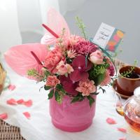 甘いお菓子と共にお茶やコーヒーを飲み、会話を楽しみ仲を深めるスウェーデンの風習「FIKA(フィーカ)」をテーマにした母の日のお花です。お花を飾りゆったりとお茶を飲む、そんな時間を贈ると共に、会話の弾む家族の時間を創出します。すぐに飾っていただける、アレンジメントタイプです。