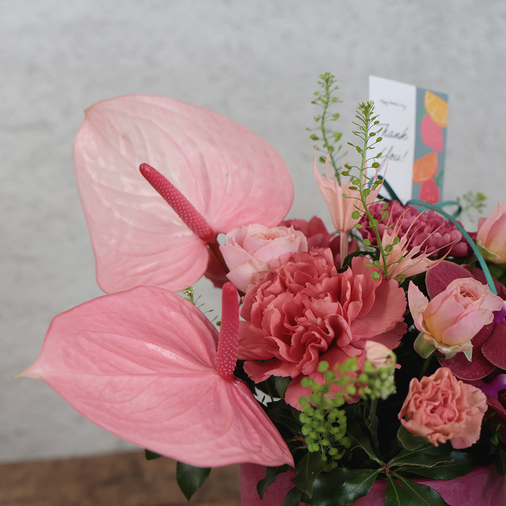 カーネーション、胡蝶蘭、スプレーバラ、アンスリウムなど