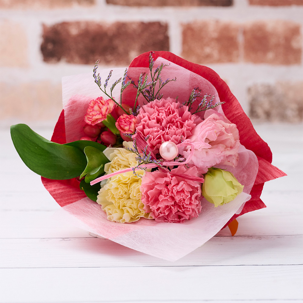 カーネーションなどの花材を使用し女性らしい優しい雰囲気をイメージして仕上げました。ピンクの濃淡がとても綺麗な誰からも好かれる花束で、母の日に感謝の気持ちを伝えるのにもぴったりです。※画像と多少異なる場合がございます。花卉・花材が画像と変更になる場合もございます。※花材・ラッピングなどが画像と変更になる場合がございます。