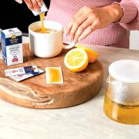 カップにティーバッグを入れてお湯を注ぐだけで蜂蜜の甘みと芳醇な紅茶のコクと香りをお楽しみいただけます。またマヌカハニーはニュージーランドのマヌカの木から採集された蜂蜜をシート状の個包装にしているので扱いやすく持ち運びにも便利です。