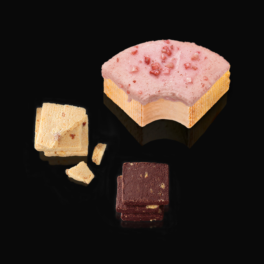 ふんわり広がる苺の香り、季節限定の苺のチョコをまとったしっとりきめ細やかな「クアルトバウム苺」と、ほろほろ食感の焼きチョコ「ノボタイル」の詰合せです。