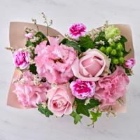 いつも優しく可愛らしいお母さまへ、心からの愛と感謝を込めてお届けする特別なセットです。日比谷花壇のデザイナー西澤真実子さんが手掛けた特別デザインのアレンジメントは、贈る人の愛と感謝の気持ちを表現します。母の日の象徴であるカーネーションを優しげな色合いで添え、バラとの調和が取れた特別なピンクのグラデーションがエレガントな仕上がりです。 一緒にお届けするのは、<アンリ・シャルパンティエ>の人気クッキー「プティ・タ・プティ」。【わくわく。「プティ・タ・プティ」なパリの散歩】「プティ・タ・プティ」(フランス語で「少しずつ」という意味)は、パリをイメージしたモダンでおしゃれなひと口クッキーの詰め合わせです。箱を開けたその瞬間から、バラエティ豊かな焼菓子たちがモダンアートの絵画のようにお出迎えします。こだわりの味わい: 香り高いバター、チョコレート、シナモンや木イチゴなど、こだわりの素材を使用した9種のひと口クッキー(計26個入)です。散歩する楽しさ: エッフェル塔のピックを片手に、パリの街の美しい石畳を散歩するように、お好きなものをお召し上がりください。優しさに満ちたエレガントな花と、箱を開けるたびにわくわくする、楽しいティータイムを演出するクッキーで、心に残る母の日を贈りませんか。