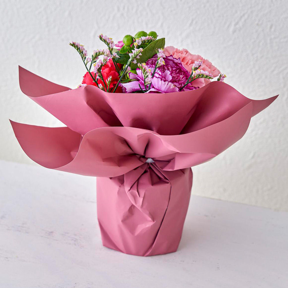 生花:バラ、カーネーション、スターチス、ヒペリカム、グリーン