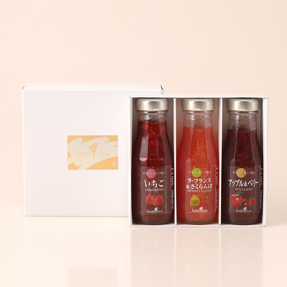 上品な甘さに仕上げたフルーツソースの3本セット。プレーンヨーグルトやアイスクリーム等によく合います。