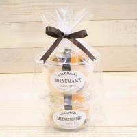 <横濱銚子屋>の蜜豆とスタンディングブーケのセットです。愛らしいクマのピックを添えた、テーブルなどに飾りやすいサイズのスタンディングブーケです。花瓶のご用意がいらずそのまま飾ることができます。つるんとした寒天がおいしい清涼感のある蜜豆は、オレンジ、黄、緑と寒天の彩りも楽しくシロップと一緒にお召し上がりいただけます。酸味のあるシロップに入ったみかん、パイン、豆入りのフルーツも付いています。お好みに合わせて甘さを調節していただけます。