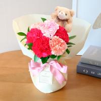 テーブルなどに飾りやすいサイズのスタンディングブーケです。愛らしいクマのピックが、ギフトに温もりを添えます。ラッピングの中にエコゼリー入りのブーケスタンドがセットしてあります。花瓶のご用意がいらずそのまま飾ることができます。大好きなお母さんへ「ありがとう」の気持ちを贈りませんか。