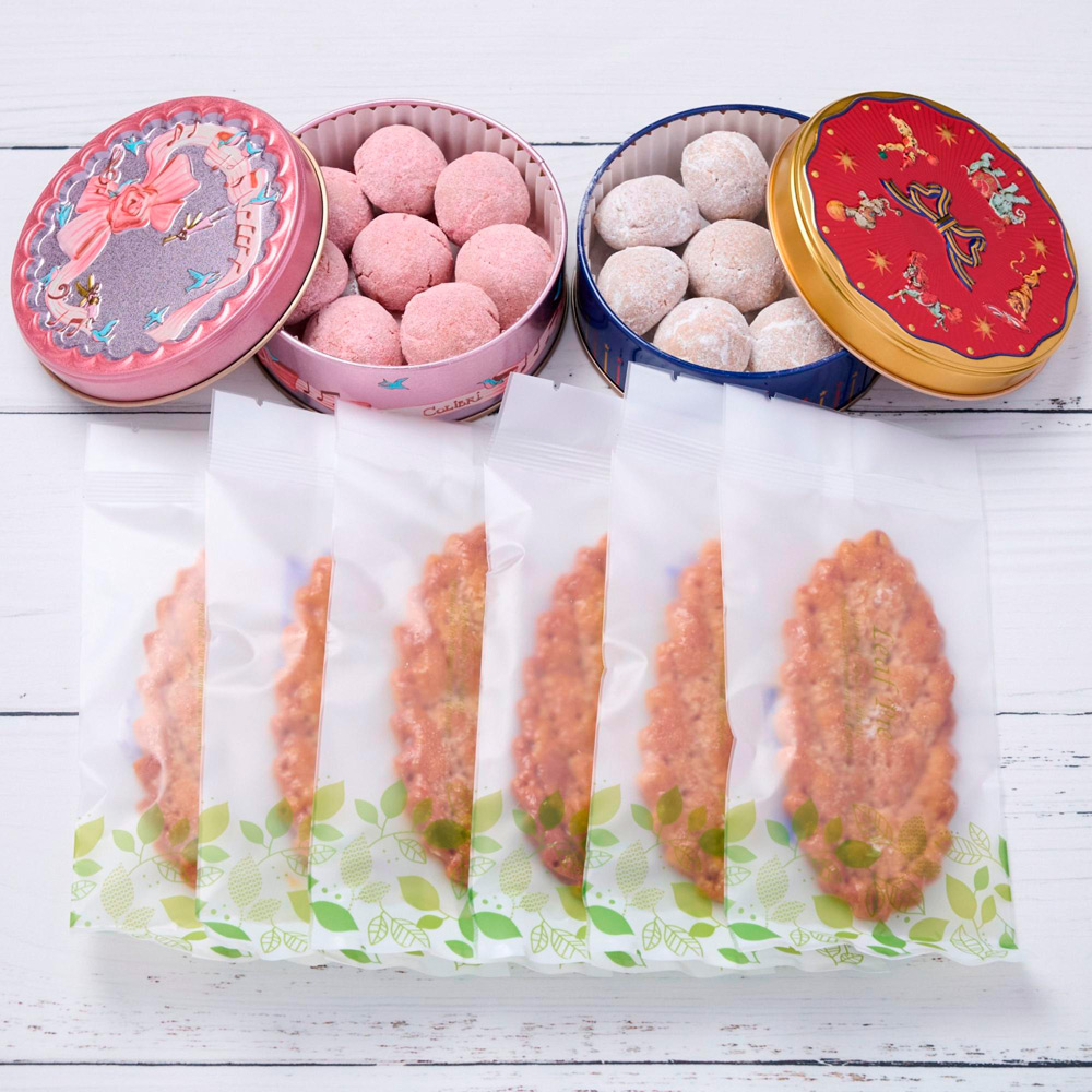 〈リーフパイ〉香り豊かな発酵バターをたっぷり使用したパイ生地に、アクセントとして能登の海水で作られた塩を効かせた商品。食べ飽きない味わいに。〈ブールドネージュ〉石川県産「ひゃくまん穀米」の米粉を使った、卵、小麦粉不使用のホロホロ食感のクッキー。コーヒーや紅茶のお供に。プレーンといちごの2種をお楽しみいただけます。