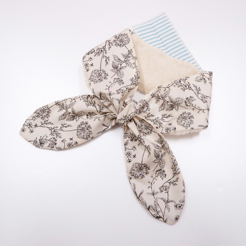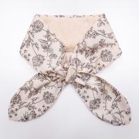 今治産タオル生地を使い、縫製も今治のタオルマフラー。ふんわりと肌ざわりがよく、洗濯を繰り返しても硬くなりにくいのが魅力です。吸水性も抜群で、汗をしっかりとカバー。水の気化熱で温度を下げる、付属の冷んやりシートを内側のポケットに入れれば、日よけしながら心地よい涼しさに。リボンのようなかわいい見た目が特長で、首周りの内側のみタオル生地なのでかさばらず軽いつけごこち。結び目のように見える部分がループ状になっていて、もう一方の端をここに通すだけで、整ったリボンの形に決まります。ナチュラルな花柄で、ガーデニングや散歩、アウトドアなどの外出にもお使いいただけます。