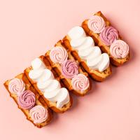 【冷凍便でお届けします。解凍までに時間がかかりますのでご注意ください。】バニラ香るクリームや、ベリーとカシスの彩りが華やかなクリームでエレガントに飾ったワッフルドルチェ。カスタードとバニラの2つのクリームの相性を楽しむ「カスタードバニラ」、紅茶の風味にカシスとラズベリーの甘酸っぱさを組み合わせた「ロイヤルミルクティー」の2種の味に仕上げました。「ありがとう」を伝える母の日のスイーツギフトに。