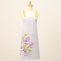 水彩タッチで描かれたフラワーブーケを大胆な構図で表現したエプロン。着けるだけでキッチンが華やかになるエプロンはギフトなど贈りものにも最適な一枚です。