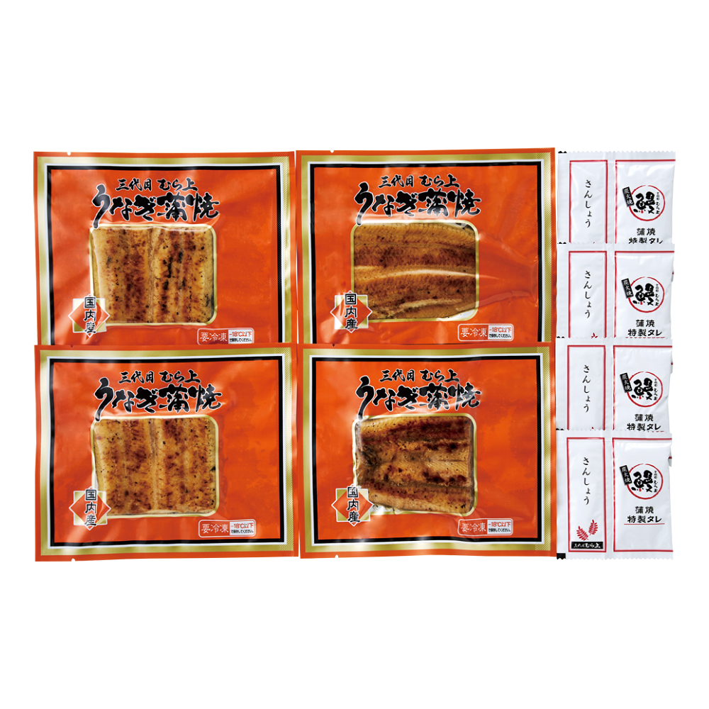 国産うなぎ蒲焼50g×4、たれ・山椒各4 ※電子レンジ対応 ※鰻の仕上りにより形状が異なります。 原料原産地:鰻(国産)