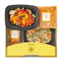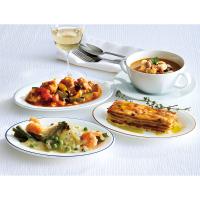 鶏肉のカチャトーラ170g・白身魚の白ワインソース180g・ボローニャ風ミートソースのラザニア120g・豆と大麦のオマールスープ150g