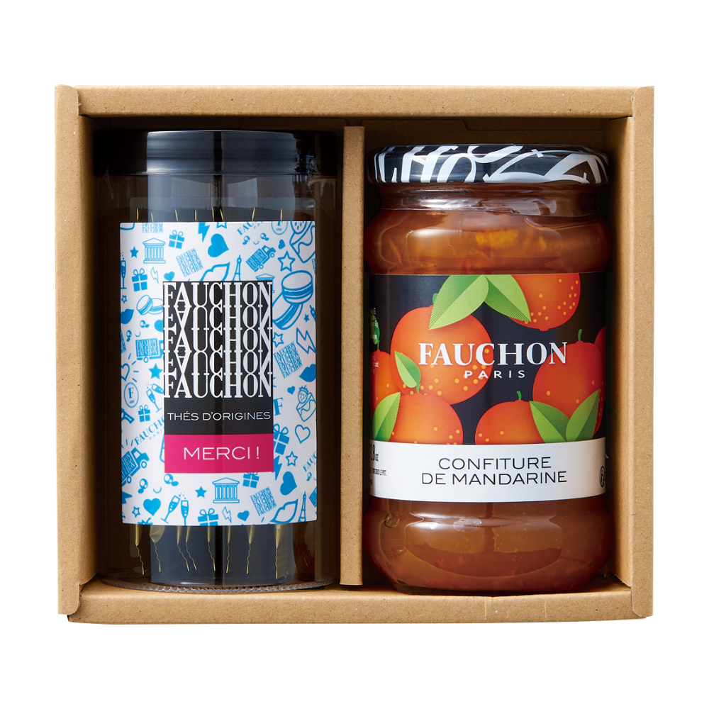 ティーバッグ(フォションモーニング・セイロンBOP各3、ダージリン×2)、ジャム(マンダリンオレンジマーマレード)365g