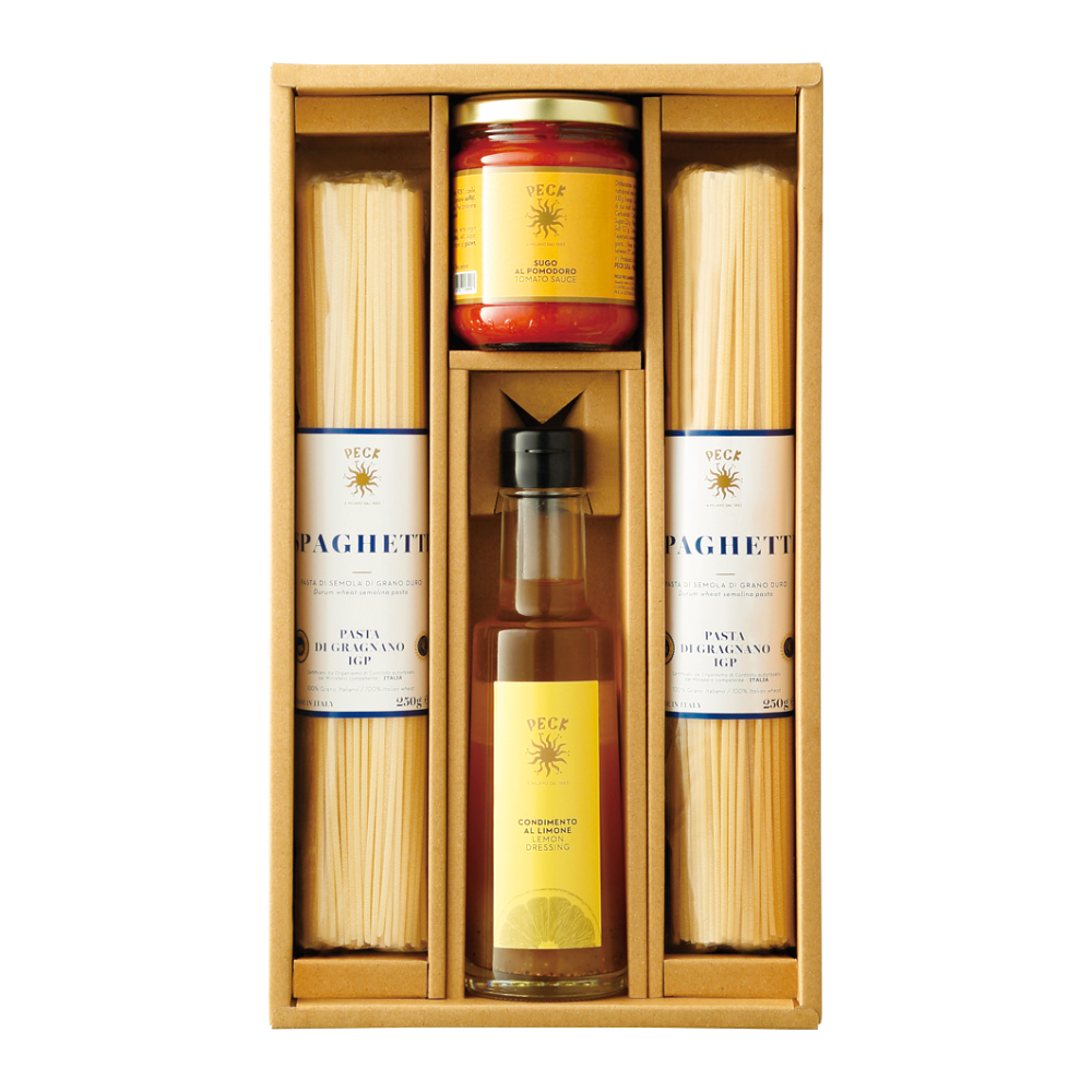 パスタ(スパゲッティ)250g×2、パスタソース(ナポリタン)180g、ドレッシング(レモン)190ml
