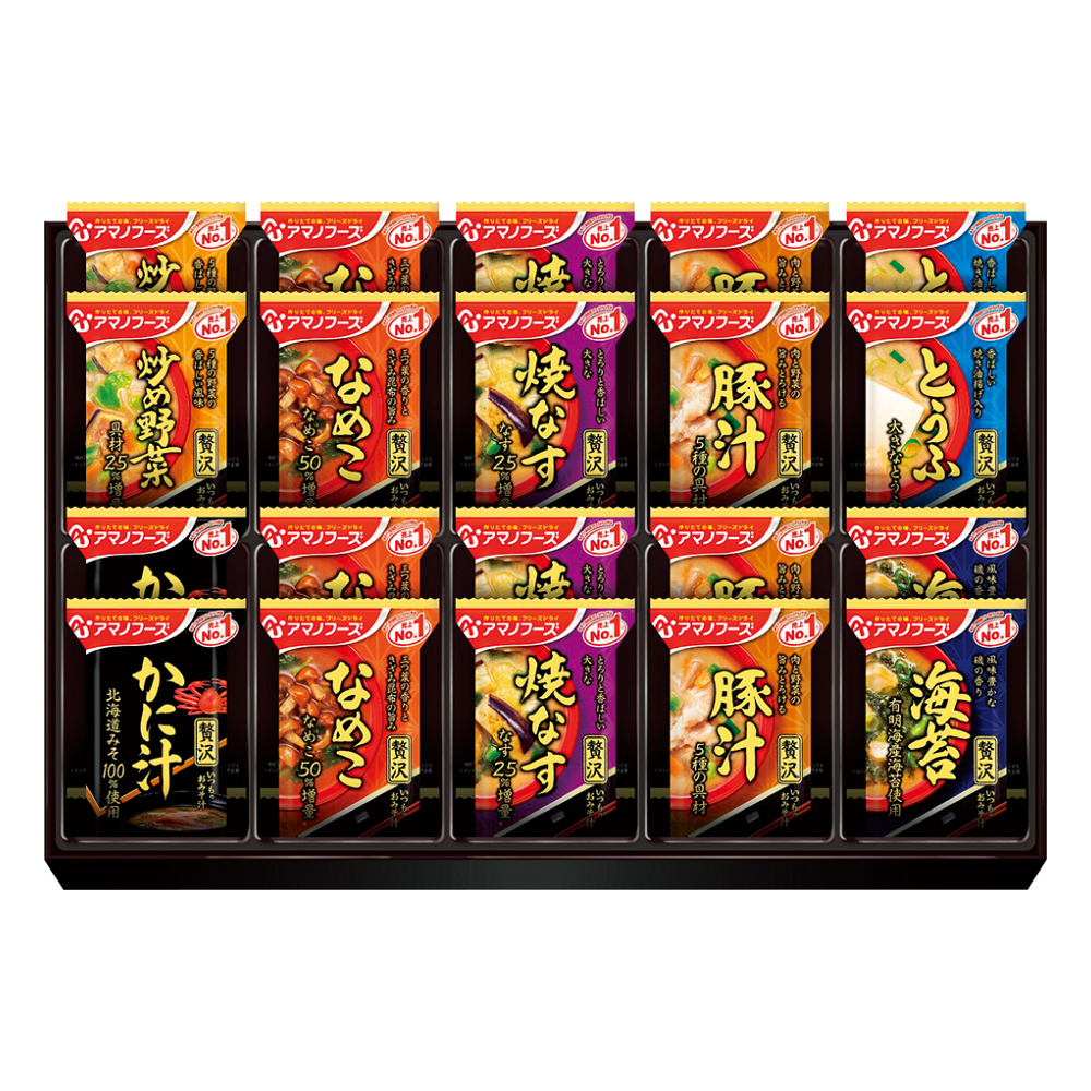 いつものおみそ汁贅沢(なめこ・焼なす・豚汁各4、炒め野菜・とうふ・かに汁・海苔各2)計20食