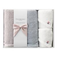 使い心地にこだわり、撚りをかけた糸と無撚糸を交織して使用。吸水性が良く、やわらかな風合いに織りあげた今治タオルです。上質・品格・エレガンスをキーワードに、品のあるプレーンなデザインにしています。色合いは2色の先染め糸を淡いエレガンストーンでまとめ、アイキャッチに上品さを演出するサテンリボンを施し、華やぎのあるギフトセットに仕上げました。日々の暮らしの風景に美しさを添える、贈られた方々に喜んでいただけるギフトです。