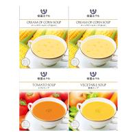 コーンクリームスープ(粒入り)150g×2、トマトスープ・野菜スープ各150g ※冷やしても温めてもおいしくお召しあがりいただけます。