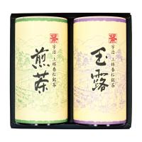 上林春松本店人気の玉露と煎茶の詰合せ。手軽に味わえるのど越し爽やかな「玉露」と、口当たりがまろやかで渋みが少なく飲みやすい「煎茶」の詰合せ。