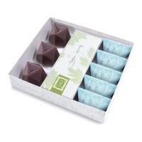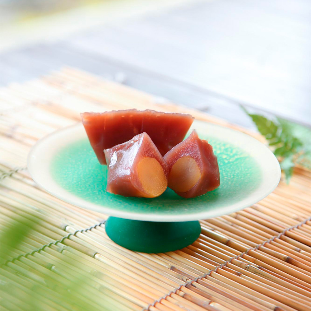 [あも(蓬)]滋賀県伊吹山産の〈蓬〉を、羽二重餅に練り込んだ季節限定の「あも」。蓬の収穫は一枚一枚丁寧に、やわらかいところのみを摘み取ります。口の中でやさしく広がる小豆と蓬の風味をご堪能ください。[栗山家]もっちり栗蒸し羊羹。小豆の煮汁を加え、丁寧につくったこし餡の羊羹生地は風味豊か。中には栗の甘露煮をまるごと一粒入れました。[水羊羹]叶 匠壽庵、夏一番の涼菓。手間を惜しまず、小豆の味を大切に濃厚なこし餡に仕上げました。合わせる天然糸寒天は厳選された天草を使用。寒さの厳しい時期に天日干しを繰り返し行う伝統製法でつくられ、なめらかな口当たりを生みます。
