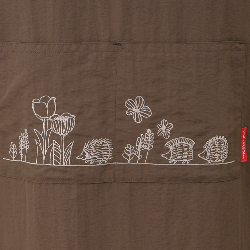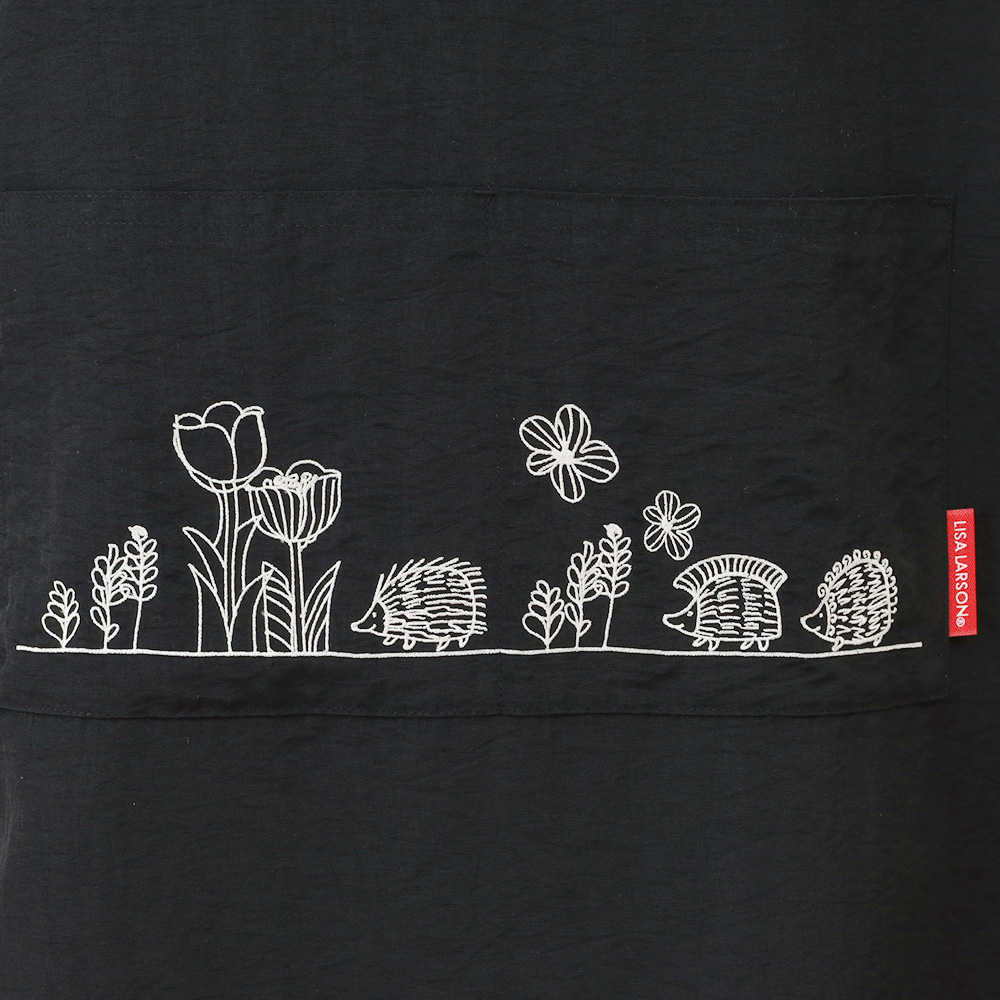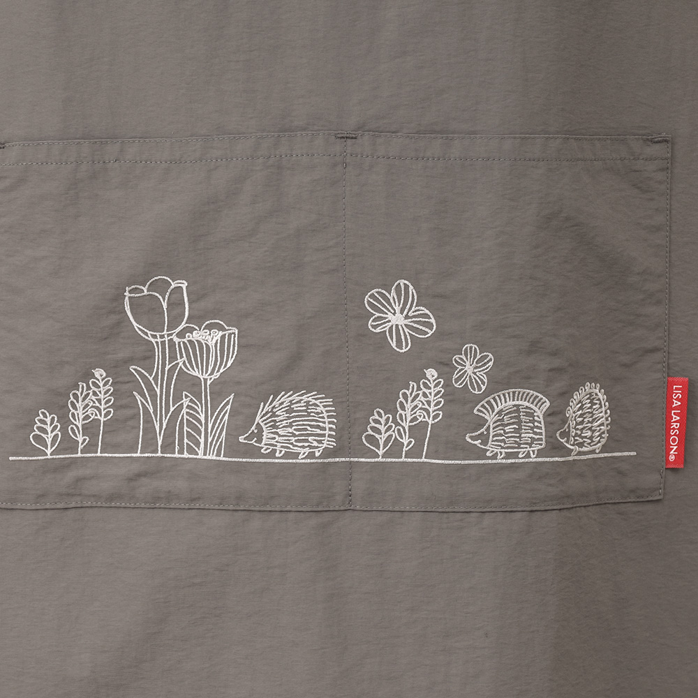 ポケットにあしらったはりねずみの刺繍がポイント