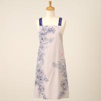 胸元から裾にかけて優美で大胆な構図で描かれたフラワープリントエプロン。ギフトにもおすすめな一枚です。