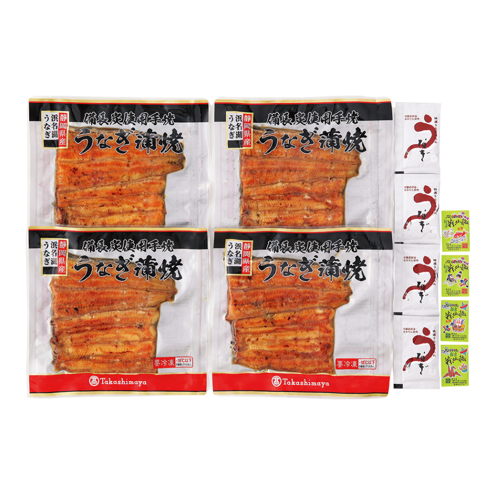 備長炭使用手焼浜名湖うなぎ蒲焼105g×4、やまつ辻田「石臼挽山椒」・たれ各4
