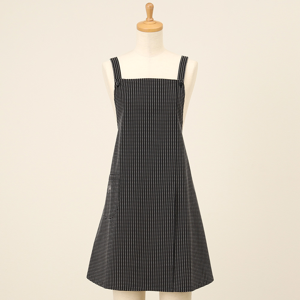 人気のドット柄を先染めドビー織りで表現した生地を使用。フロント切り替えにスリットが入り、足さばきも良くおしゃれなデザインです。