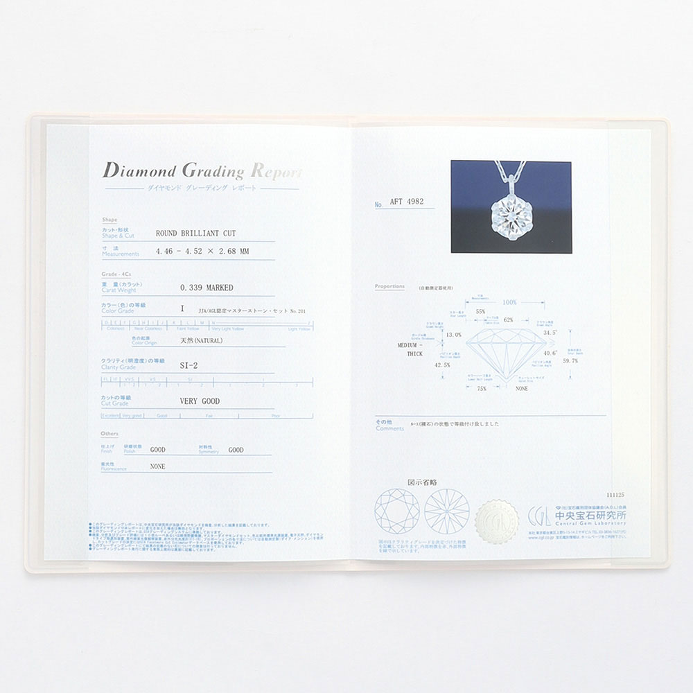 肉眼では内包物がほぼ感じられないSIクラスの良質ダイヤペンダント。さらにカットグレードは「VERY GOOD」を厳選しました。ダイヤモンド本来の輝きをお楽しみいただけます。