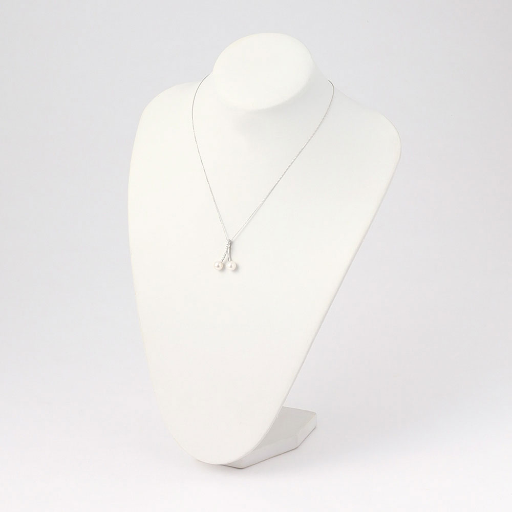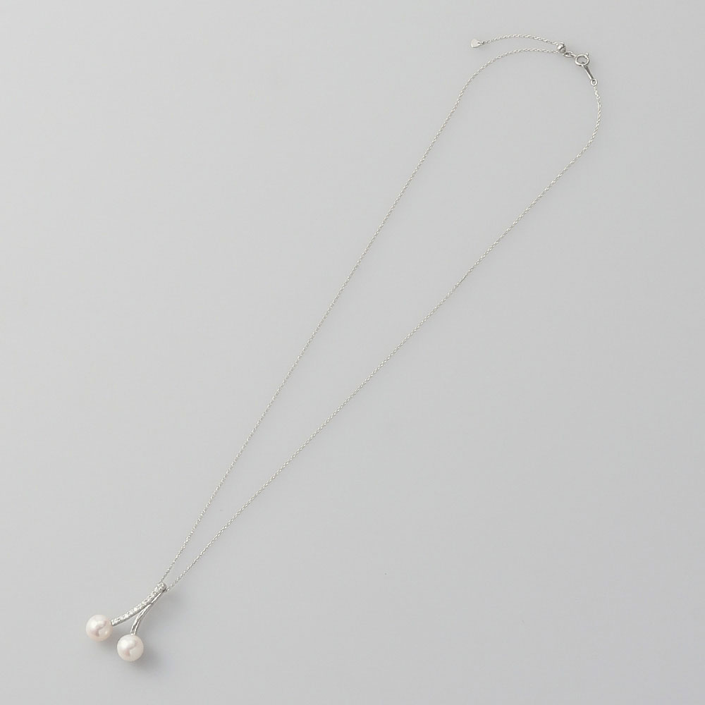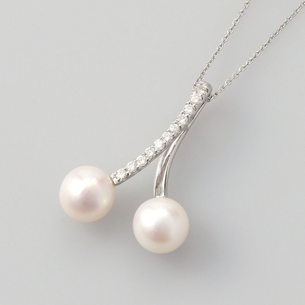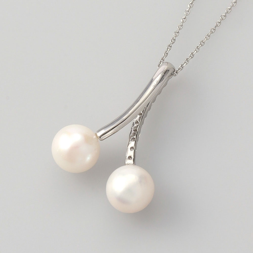 大粒8mmの淡水パールを贅沢に2粒あしらった、存在感のあるツインパール・ペンダントです。アコヤ真珠同様に核を持つ「有核淡水パール」を採用することで、美しいラウンドフォルムを実現。片側のラインには計0.2ctのダイヤモンドを並べ、輝きを添えました。チェーンは少し長めの50cm。スライド式アジャスターにより、お洋服に合わせてミリ単位でベストな長さに調節可能です。胸元で優しく揺れる2粒の真珠が装いに上品な愛らしさをプラスします。