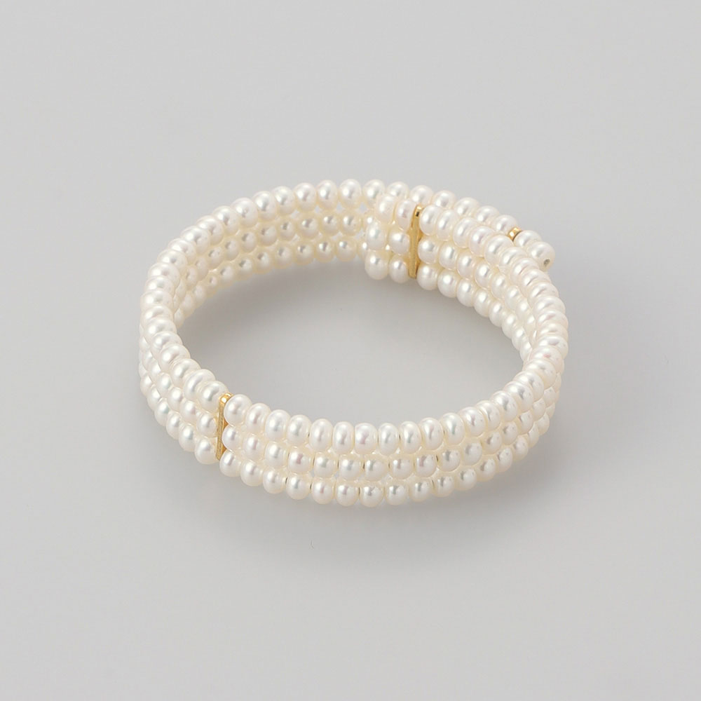 ベビー淡水パールを3連にした存在感あるネックレスとブレスレットのセット。形状記憶ワイヤーで着脱がしやすくなっています。エレガントなおしゃれをお楽しみいただけます。