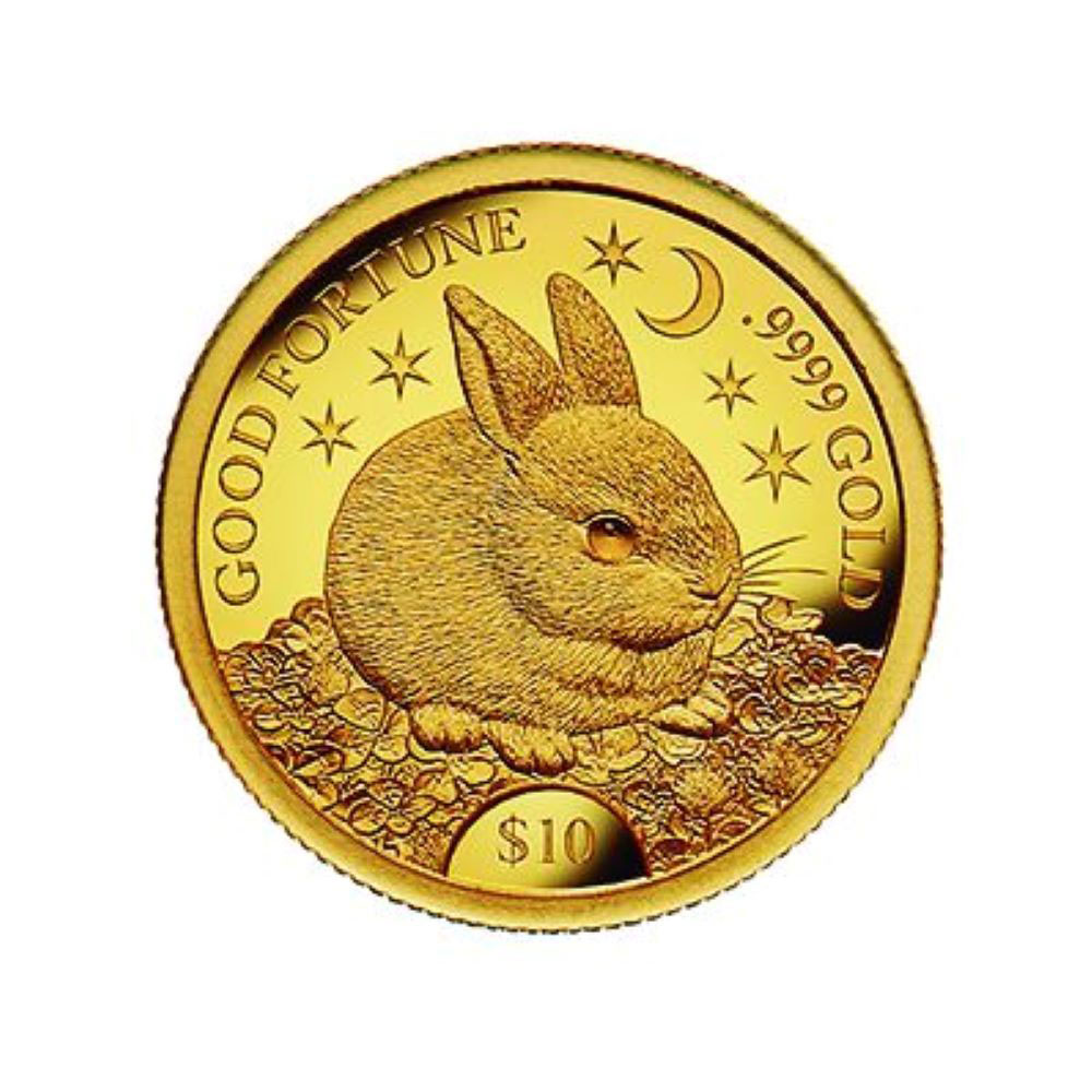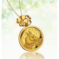 愛らしくも富貴な幸運の象徴“うさぎ”と、陽光を受けて希望・信仰・愛情・幸福の葉を広げる「四つ葉のクローバー」。そしてラッキーモチーフ月と星を添えて…。幾つものラッキーシンボルの相乗効果が、限りない幸運を予感させる一品です。確かな価値を有する品位.9999の金貨を彩る「四つ葉のクローバー」のバチカンには、永遠の美の象徴ダイヤが煌めいて…。