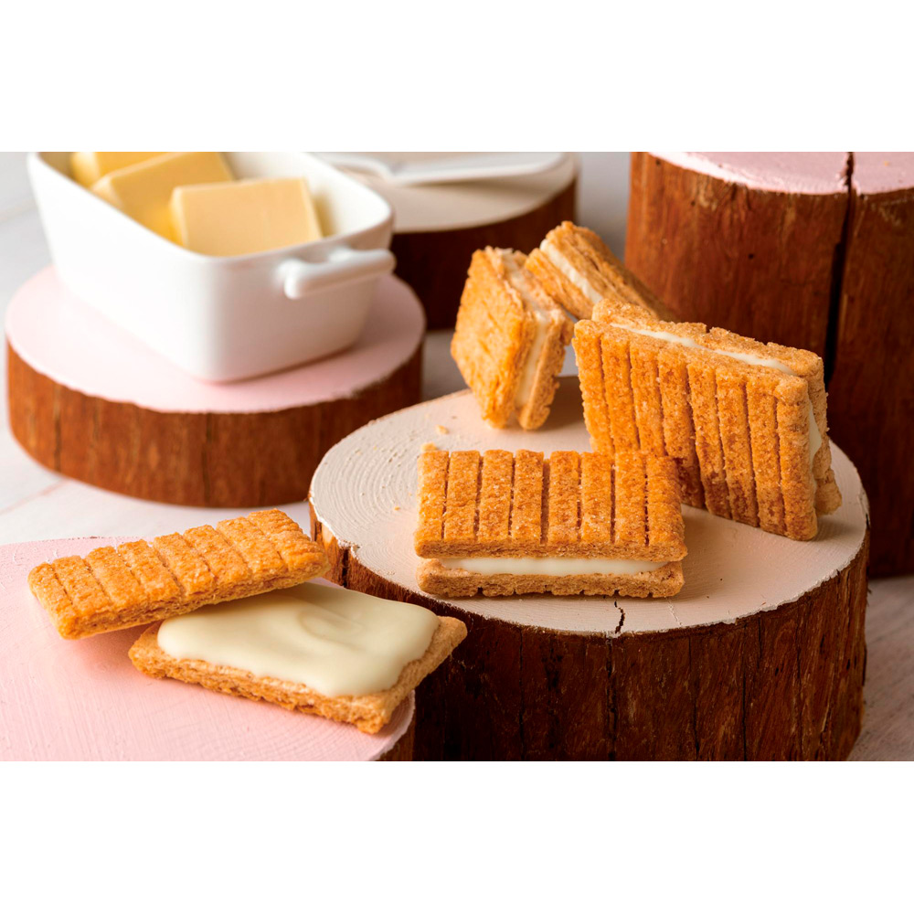 「バロン・デ・レイブランコセミドゥルセフラワーボトル」は、スペインを代表する銘醸地リオハで、僅か10%ほどしか生産されない希少な白ワインです。ボトルを彩る花々のようなフローラルな香りに包まれます。口の中では瑞々しい天然果汁が広がり、ほんのりと感じられる果実の甘みが心地よい幸福感を導いてくれます。「シュガーバターサンドの木」は全粒粉・ライ麦・小麦、穀物の旨味そのままのシリアル生地で、芳醇な発酵バターを感じる独自のブランドバターをシュガーと一緒に焼きあげました。さっくりかむとジュワッとバターが広がります。果実感たっぷりのワインとお楽しみください。