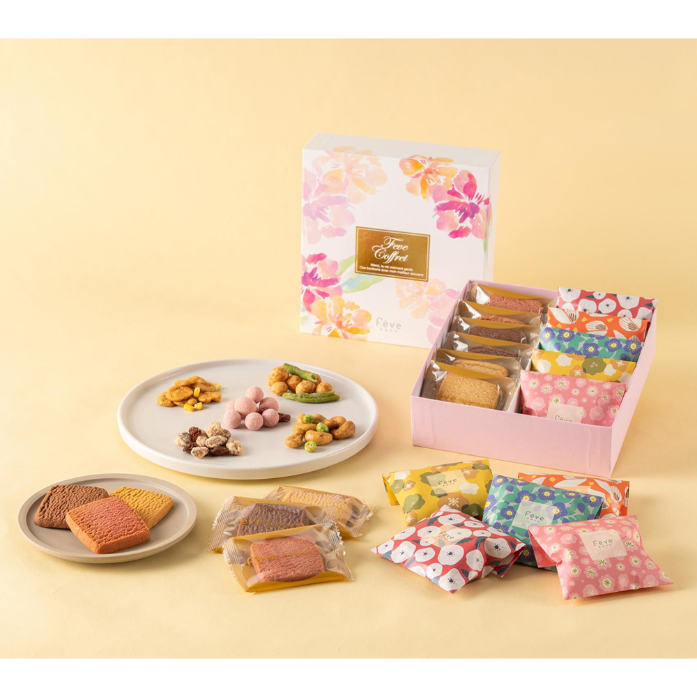 甘い味とおつまみ向けの味の豆スイーツをバランスよく5種とクッキー3種を詰め合わせました。華やかなパッケージは母の日の贈りものにおすすめです。